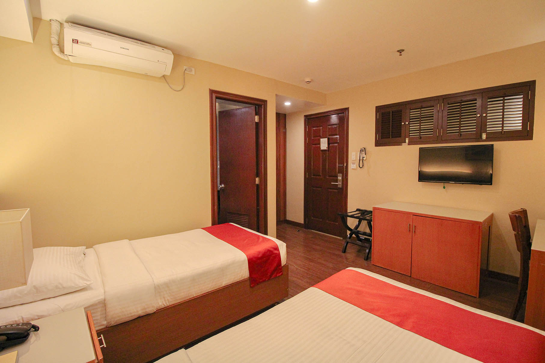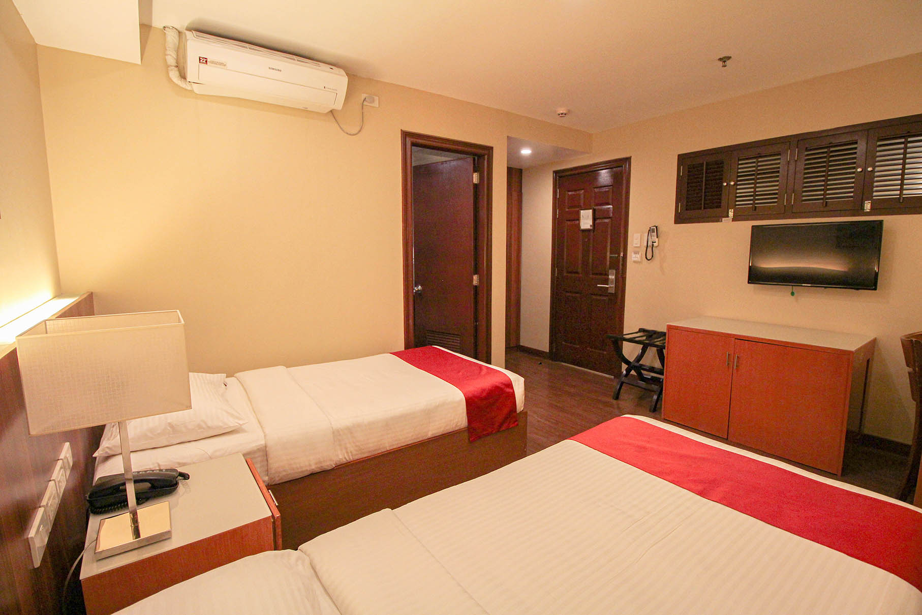 - Amenities: Air-Conditioning, Free Wi-Fi, Hair Dryer, Perculator, Refrigerator, Safe, Shower, TV