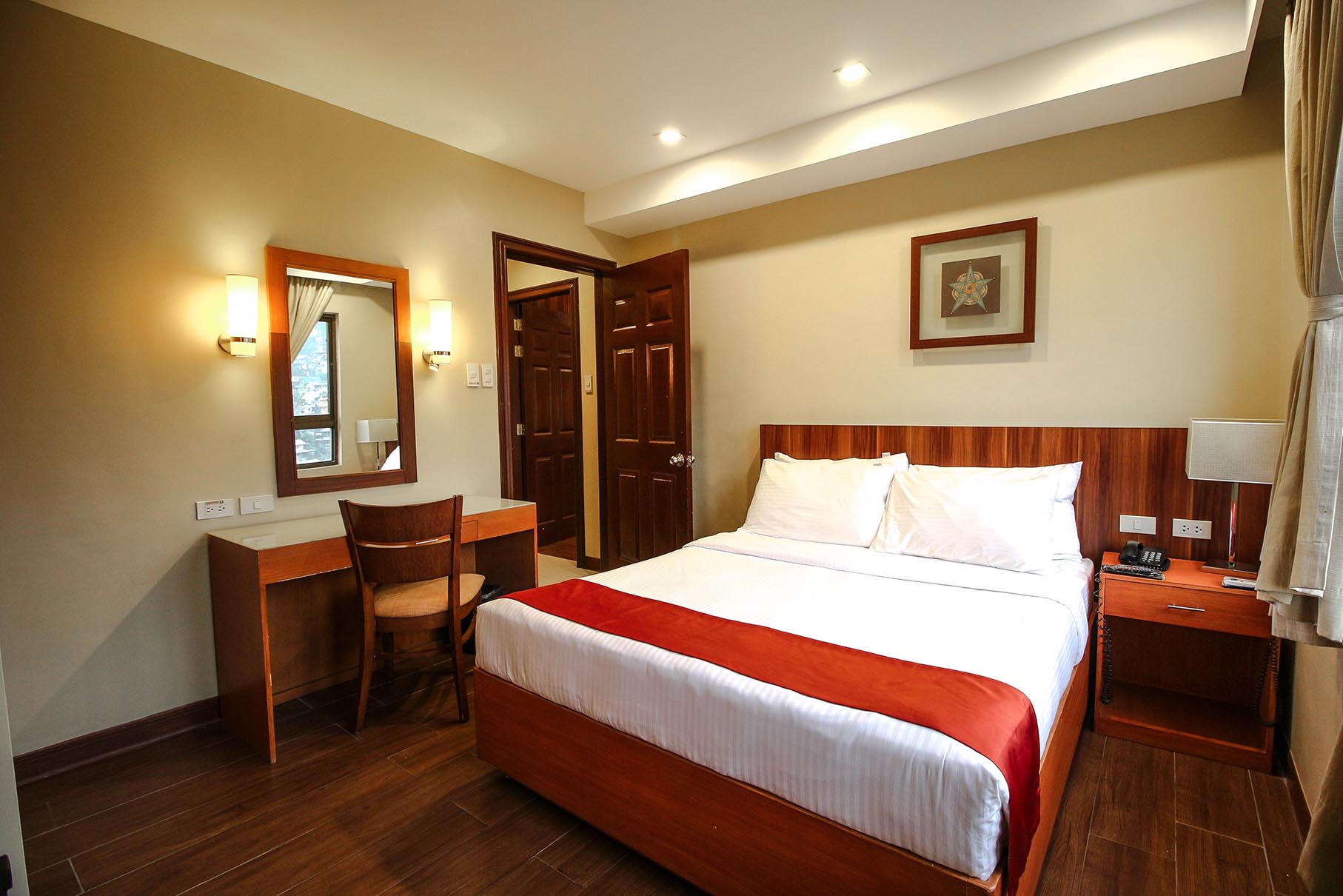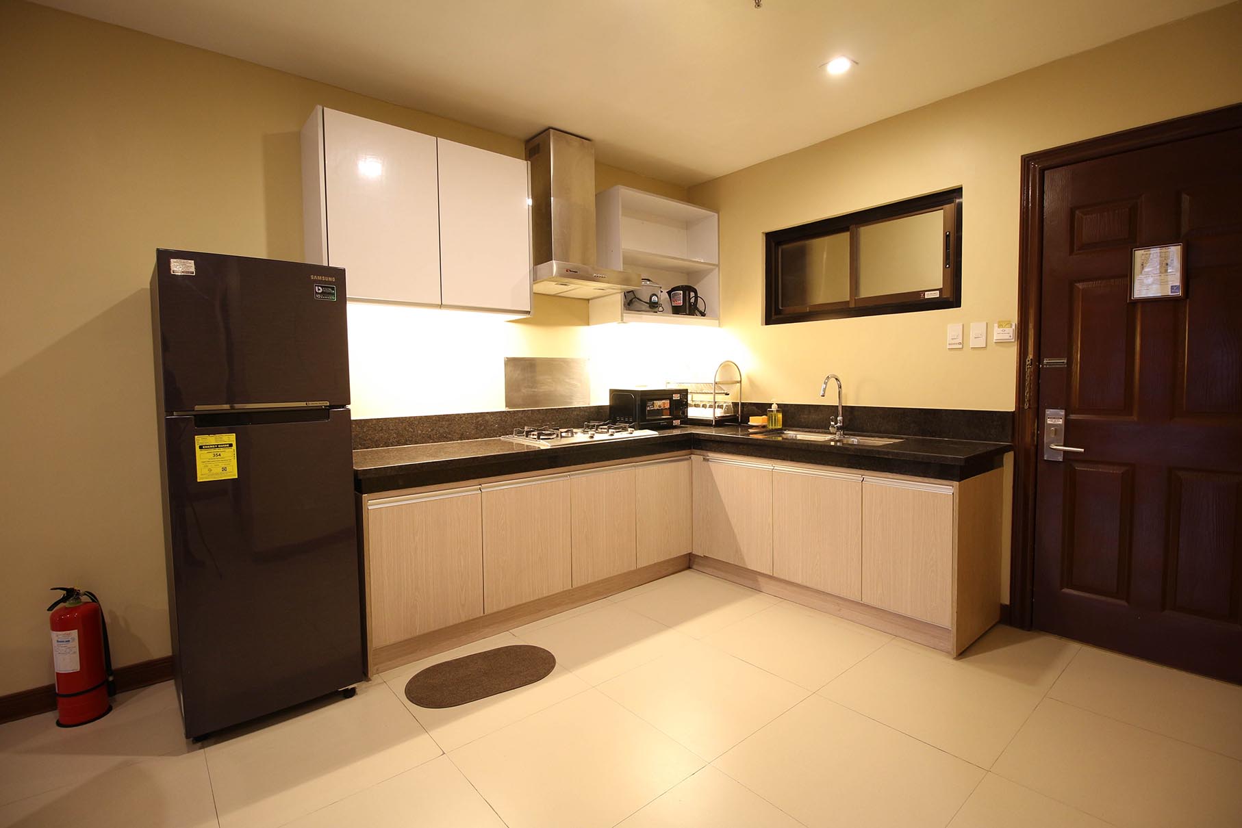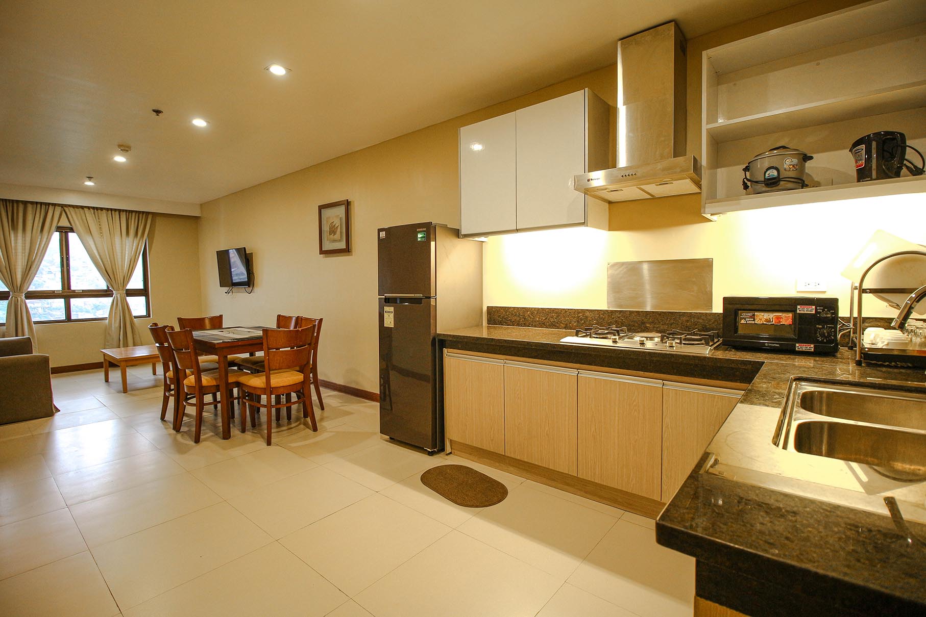 Up to 6 guests. It has a living room, dining room, kitchen with complete cooking facilities, private bath, TV, big refrigerator and two rooms with One King & One Queen bed, and a maid’s quarter.